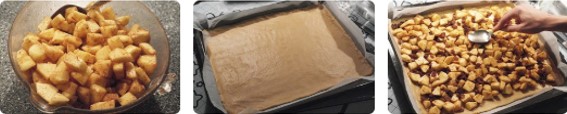 Verwarm de oven op 175°C. Voeg de saffraan toe aan het citroensap en laat even weken. Schil ondertussen de appels, verwijder het klokhuis en snijd in stukjes. Giet het citroensap over de appels en voeg de kaneel, kardemompoeder en de eetlepels suiker toe en schep goed door elkaar. Snijd een stuk bakpapier in ongeveer de grote van de bakplaat. Haal het deeg uit de koelkast en rol het deeg uit op het stuk bakpapier en leg daarna op de bakplaat.