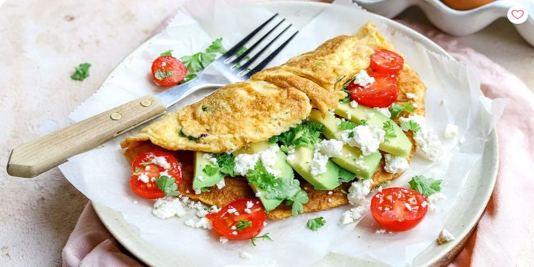 Verdeel de pesto over de omelet en leg hierop de tomaatjes, avocado en de rest van de verse peterselie.