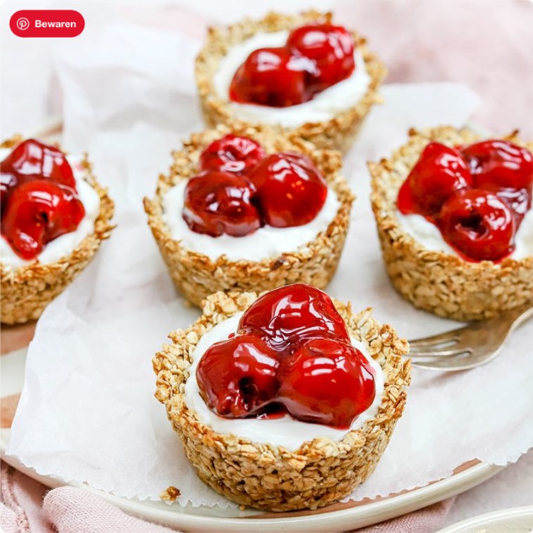 In een schaaltje meng je de kwark met honing en vanille aroma. Vul de bodempjes met de kwark en top af met de kersen.