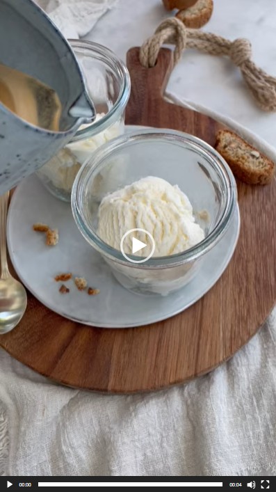 Zet een goede espresso koffie en giet deze er meteen overheen. Giet de espresso langzaam over de bol zodat het ijs aan de randen zacht begint te smelten.
