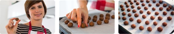 Maak de balletjes niet te groot want ze rijzen nog in de oven. Tip: Leg de balletjes in schuine rijen op de bakplaat zodat de warmte van de oven overal goed bij kan.