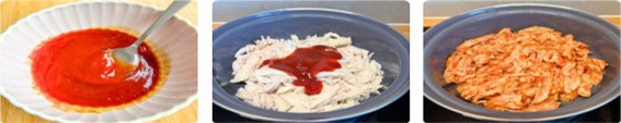 Meng in een kom de ketchup, rijstazijn, sojasaus, Worcestersaus en bruine suiker tot een gladde saus.
